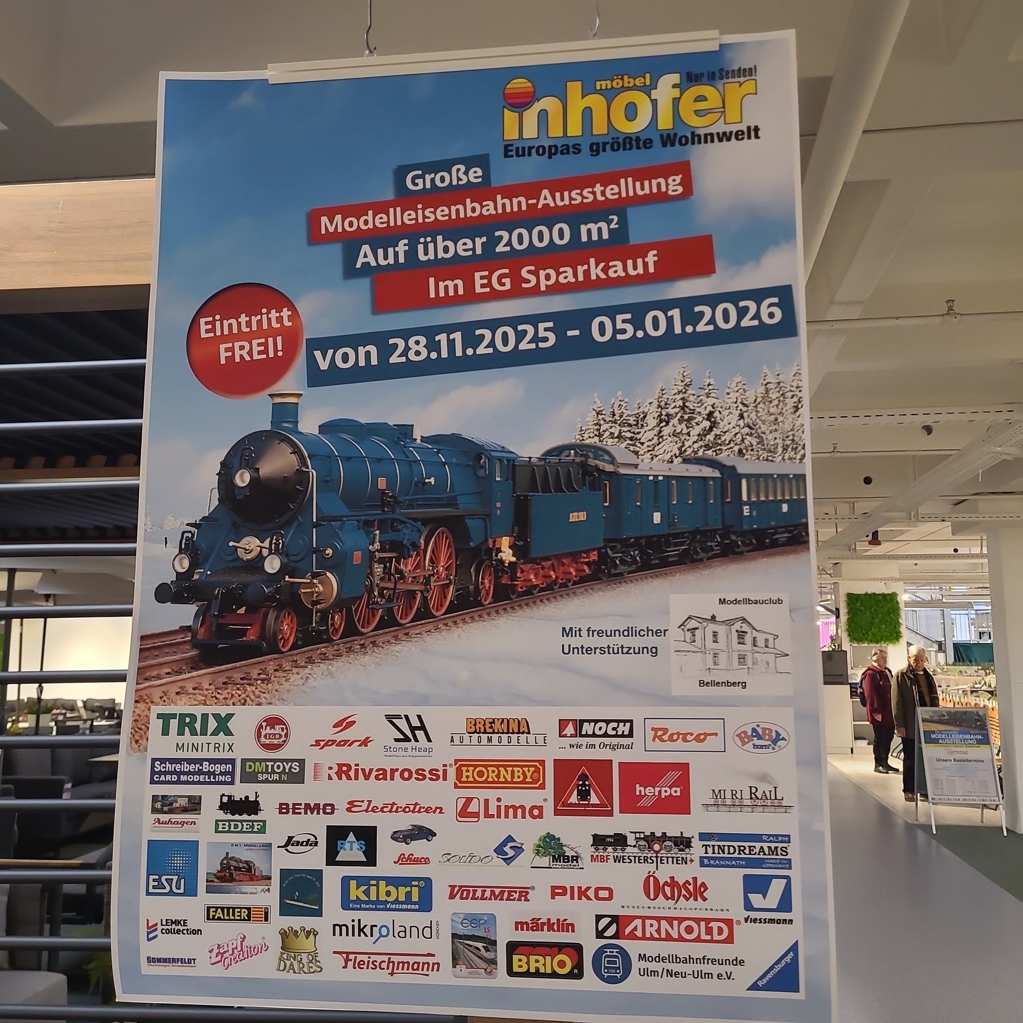 Das nächste Ziel liegt in Senden bei Neu-Ulm, also schon im Bundesland Bayern. Im dortigen Hyper-Möbelhaus "Möbel Inhofer" gibt es jedes Jahr in der Adventszeit (und etwas darüber hinaus) eine große Modellbahnausstellung auf über 2000 m2 Fläche.
