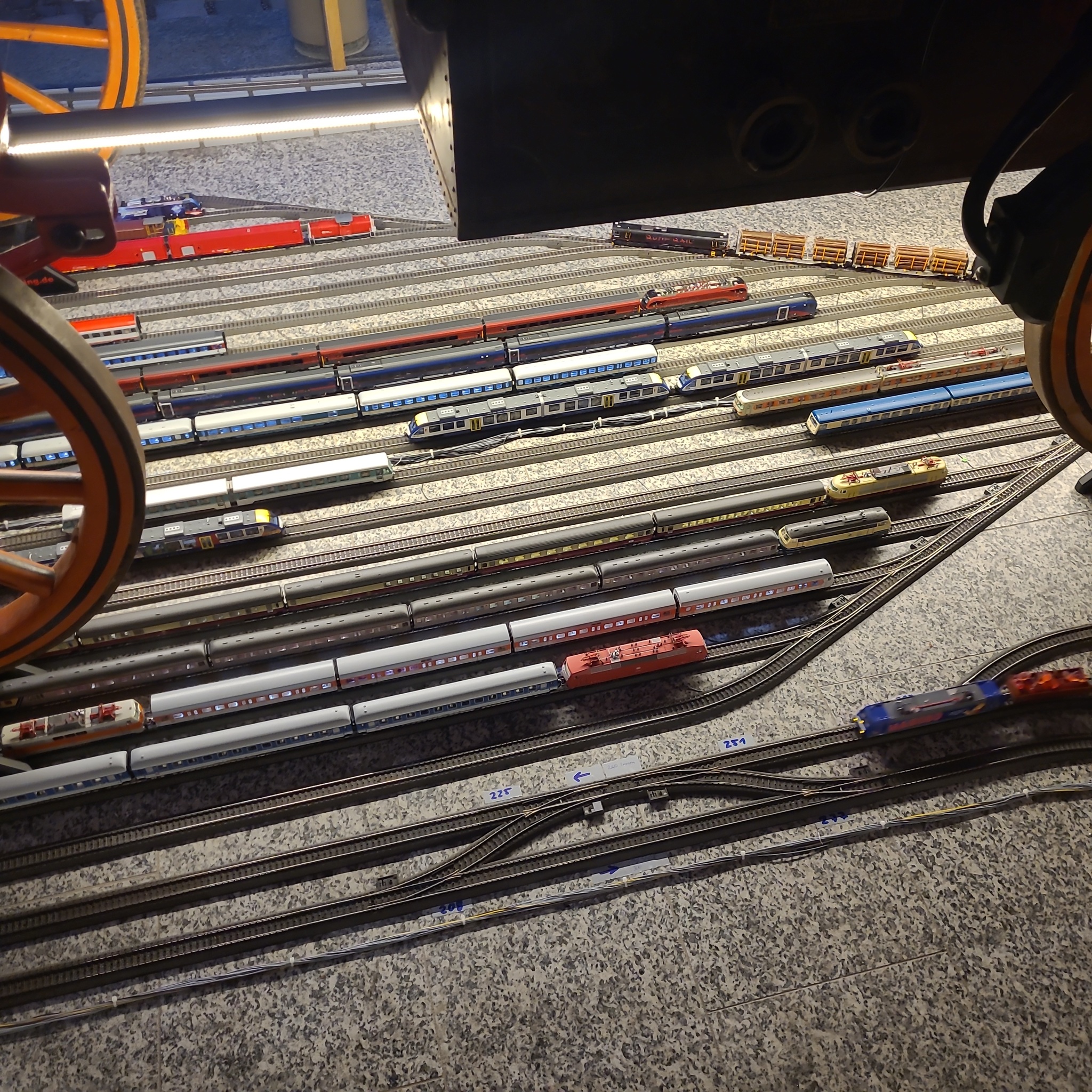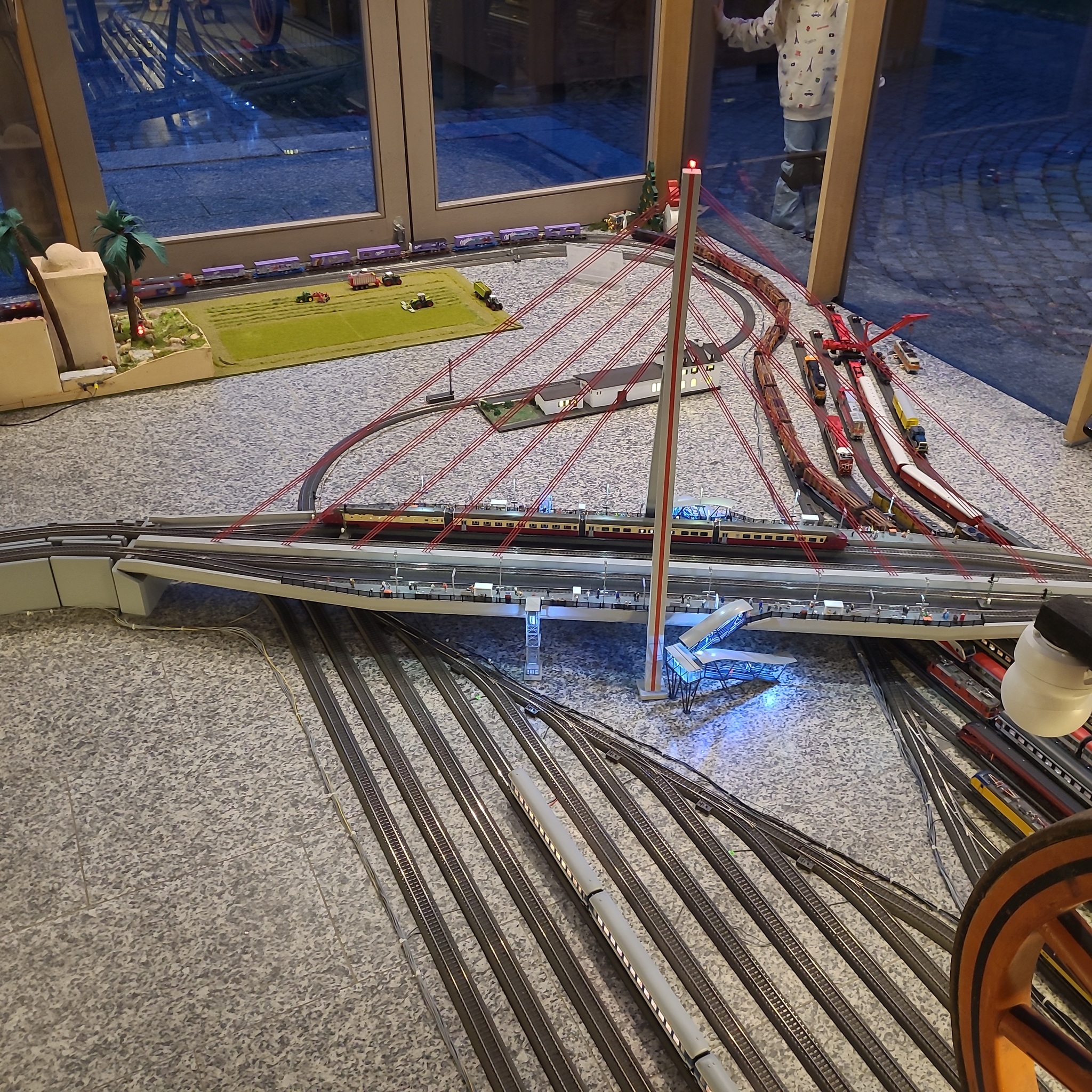 Während ich dort bin, kommen tatsächlich immer wieder andere Kinder, die den Knopf betätigen und sich die Nasen platt drücken. Die Bahn steht praktisch nie still, denn kaum ist ein Durchgang abgelaufen, erfolgt direkt der nächste Knopfdruck und die nächsten Zugpaare gehen auf ihre Reise.