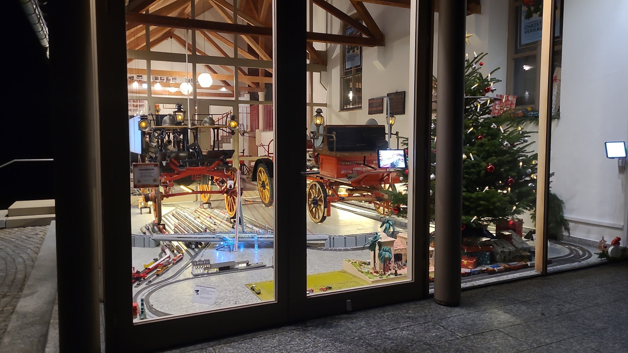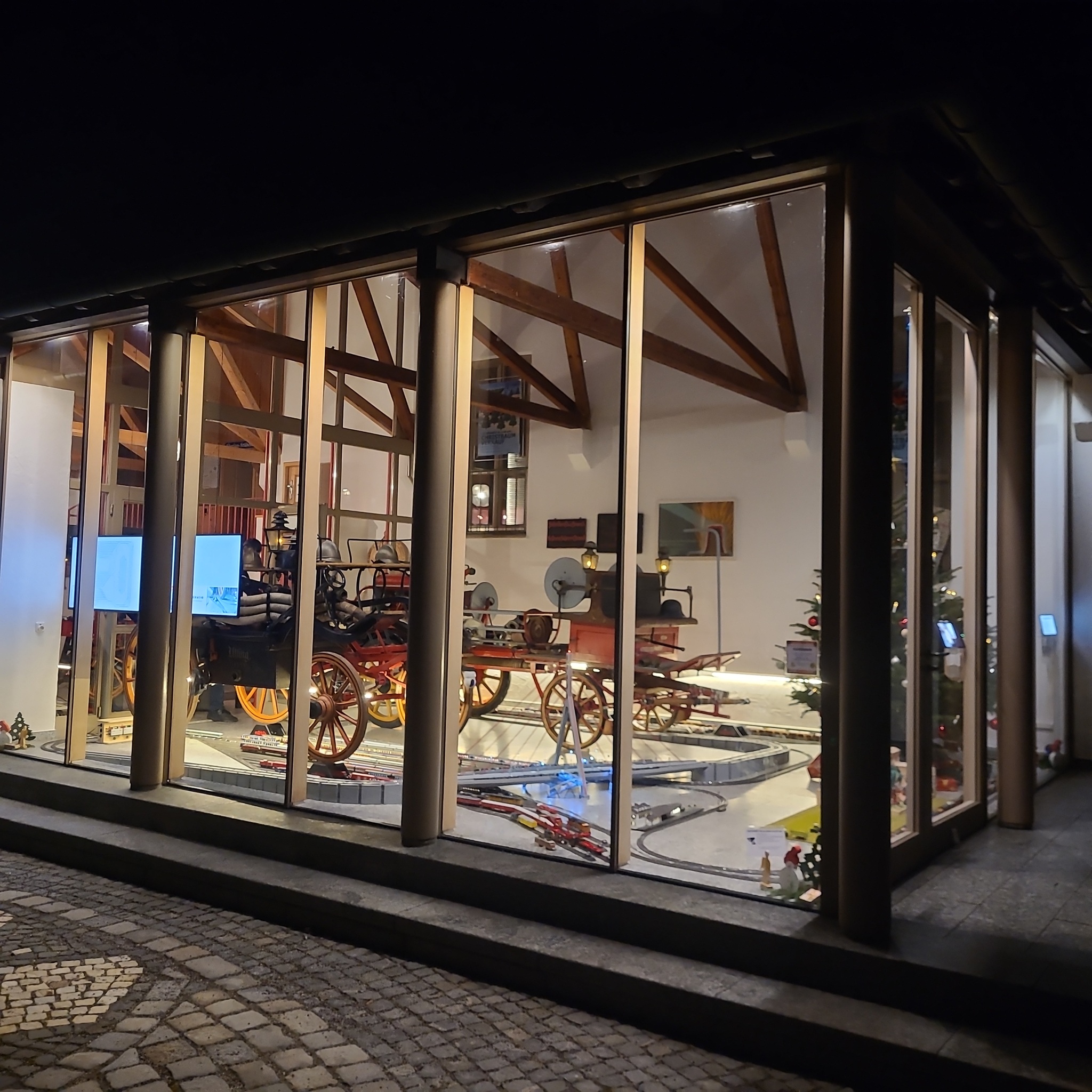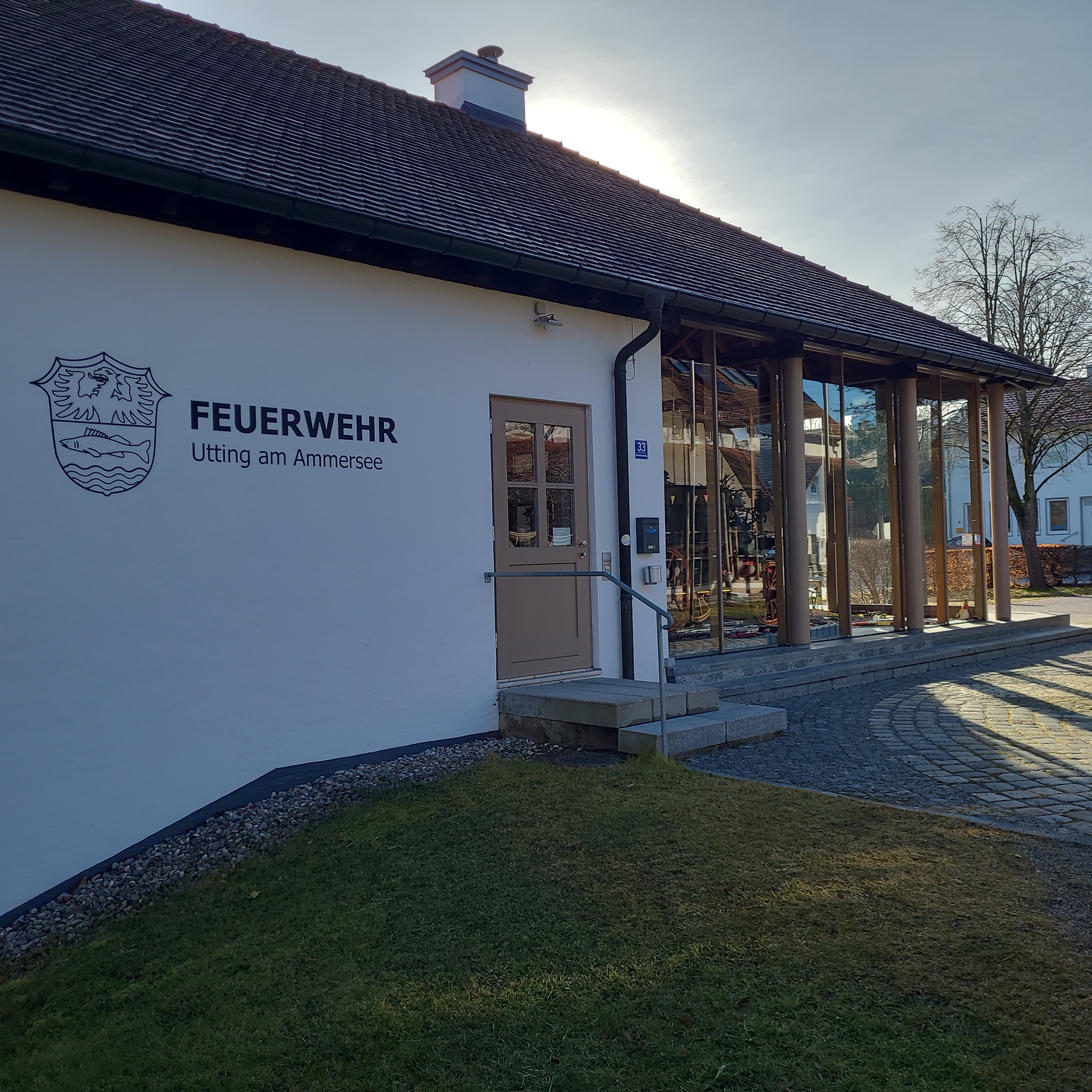 Nächstes Ziel ist eine ganz besondere "Schaufensteranlage". Sie befindet sich in Utting am Ammersee. Im dortigen Gebäude der freiwilligen Feuerwehr gibt es einen Showroom, in dem zwei alte Feuerwehrkutschen ausgestellt werden.