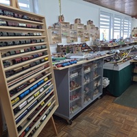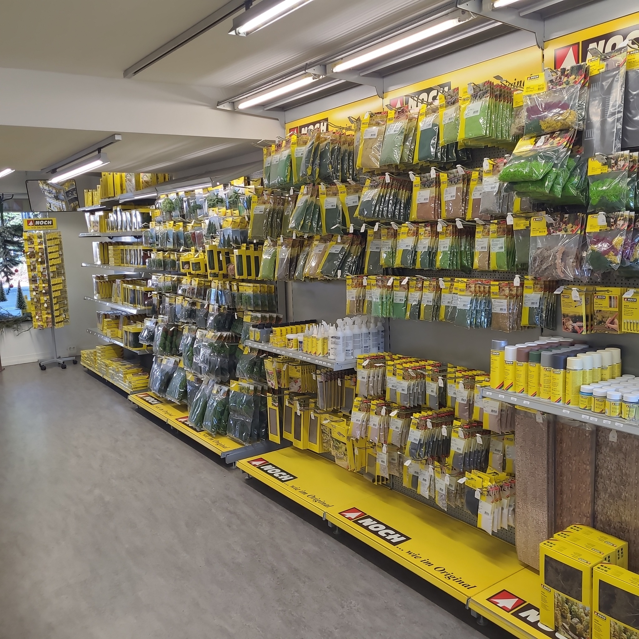 Die "Noch Modellbauwelt" liegt gut zu erreichen an einer der Hauptstraßen. Innen gibt es praktisch das Vollsortiment mit allem, was man so zur Landschaftsgestaltung im Modellbahnbau benötigt.