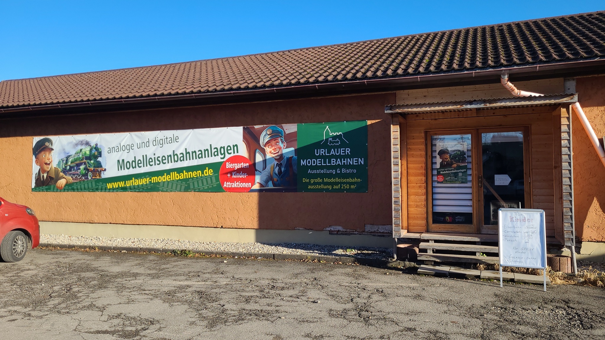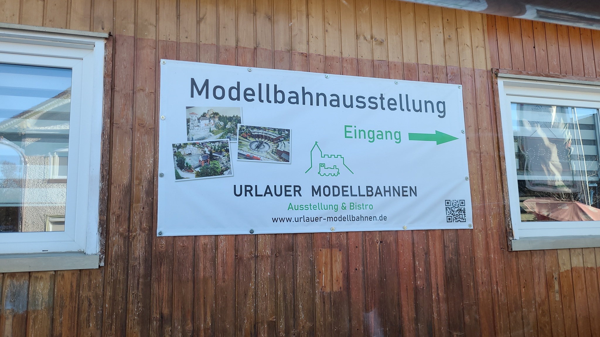 Bei dem Gebäude handelt es sich um die alte Dorfgaststätte von Urlau, in der es auch eine Kegelbahn gab. So etwas wird heutzutage ja noch weniger nachgefragt als die Modelleisenbahn. Also kam der Wirt auf die Idee, hier seine Ausstellung zu platzieren.