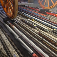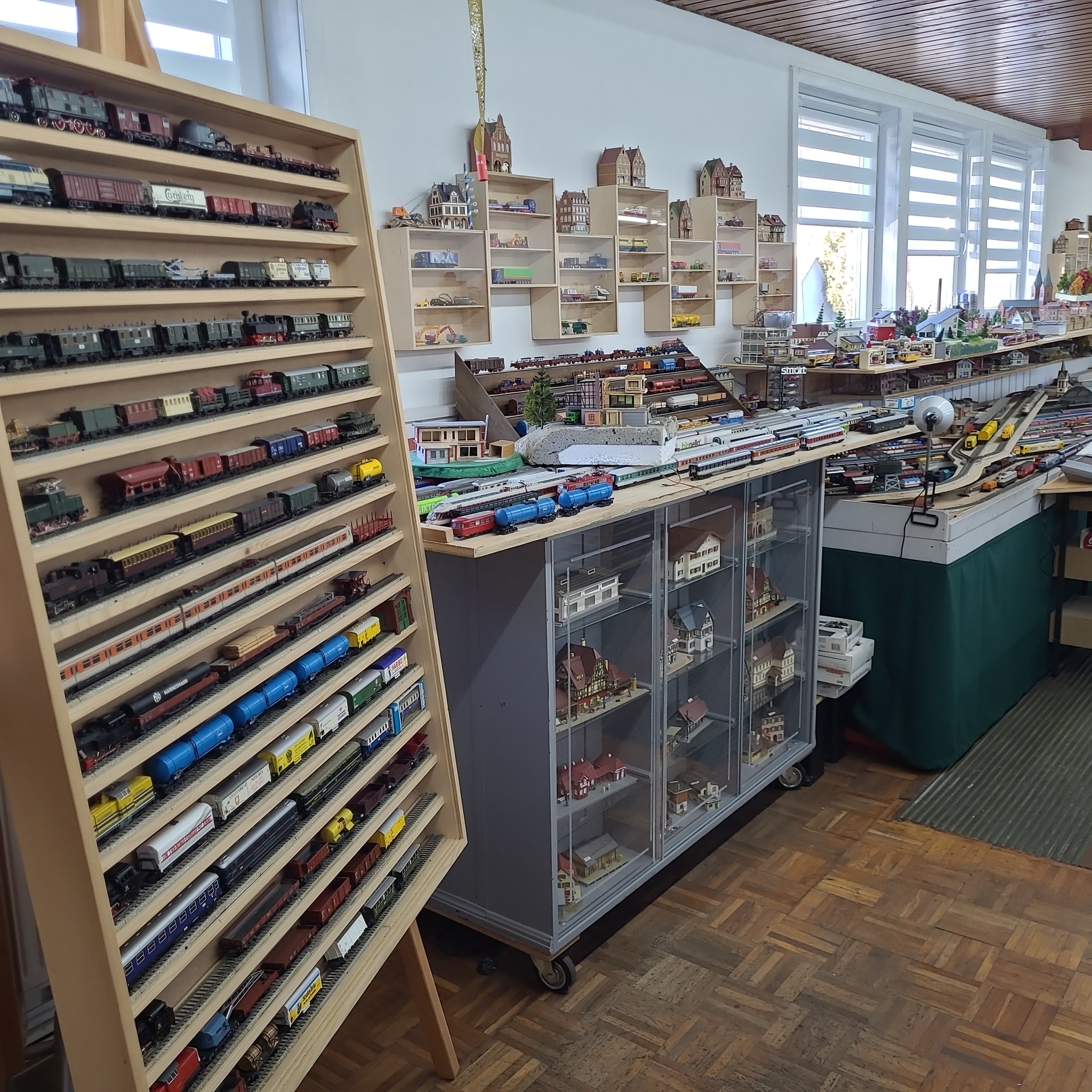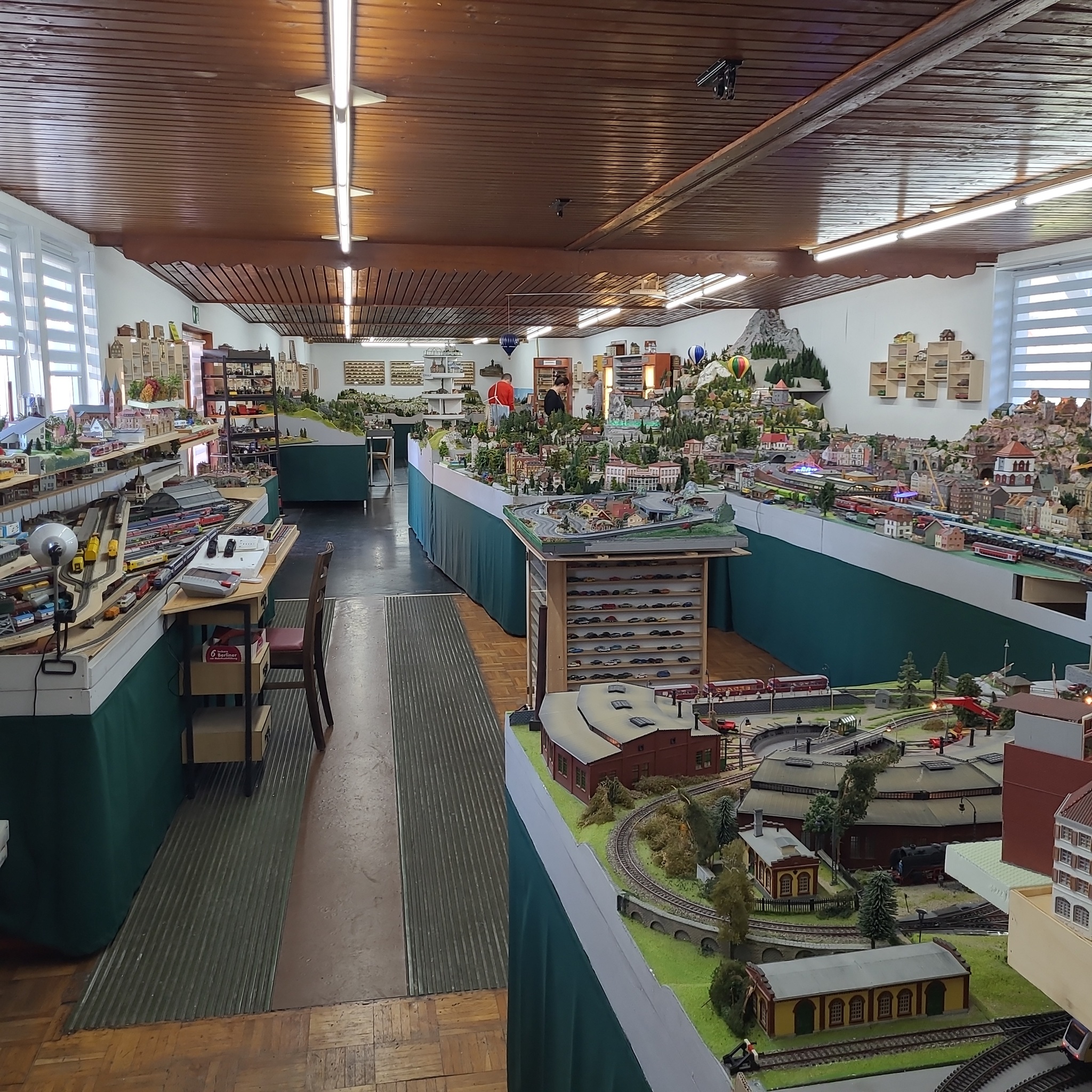 Im Innern empfängt mich erstmal großes Chaos. Es gibt nicht eine durchgehende Modellbahn, sondern rund ein Duzend unterschiedlicher Bahnen in verschiedenen Spurweiten und mit verschiedenen Abmessungen.