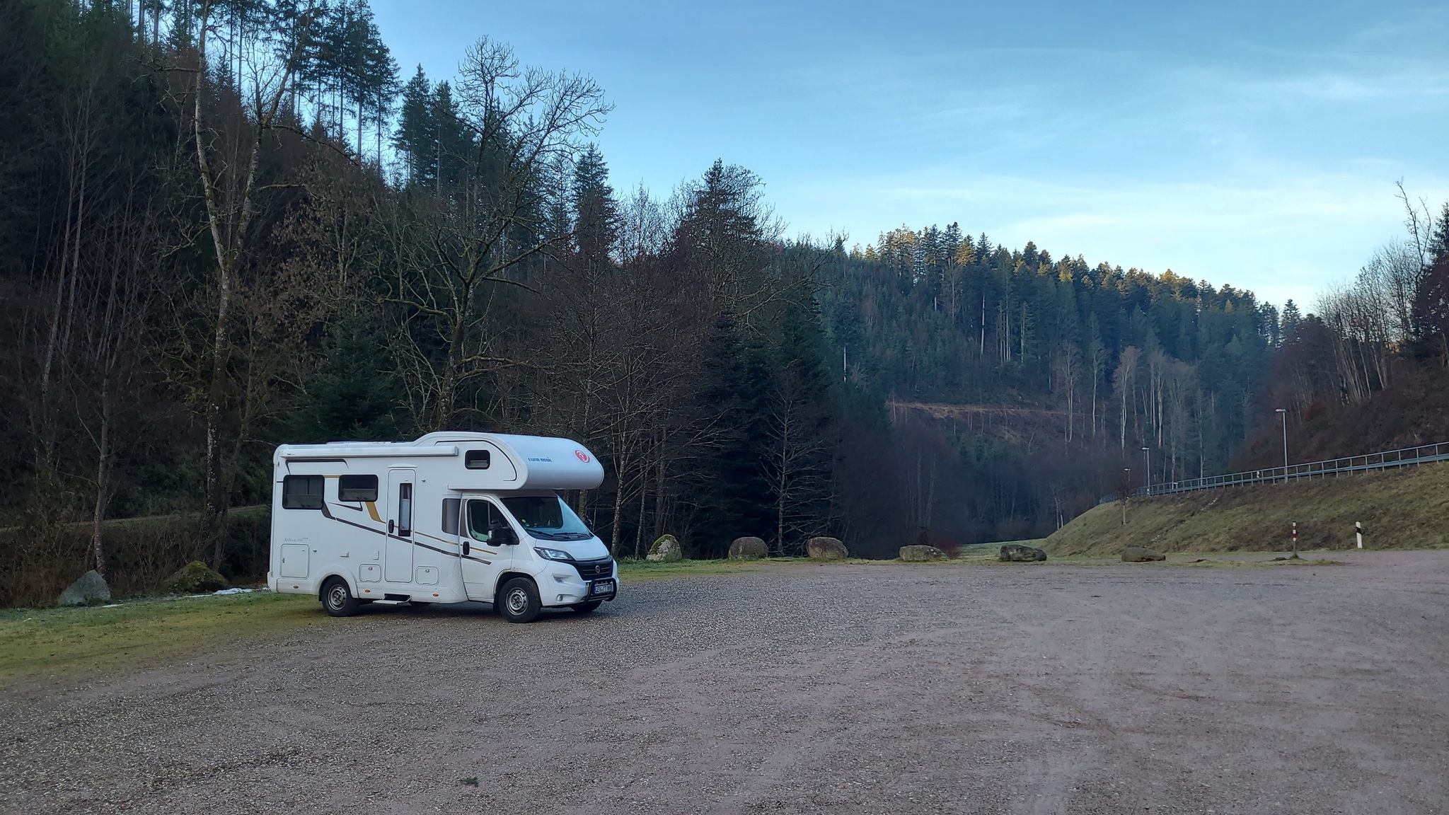 Wenige Kilometer weiter komme ich dann nach Triberg, wo ich mich zur Übernachtung auf den kostenlosen Wohnmobil-Stellplatz stelle. Hier gibt es zwar nichts, aber ich brauche außer dem Platz ja eigentlich auch nichts. Das passt also.