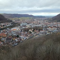 Oberhalb von Geislingen liegt die Burgruine Helfenstein, wo ich mit Tina vor einigen Jahren schonmal war. Man hat von dort einen guten, geradezu modellbahnhaften Überblick über das Tal mit Geislingen und den unteren Streckenabschnitt der Geislinger Steige.