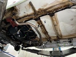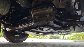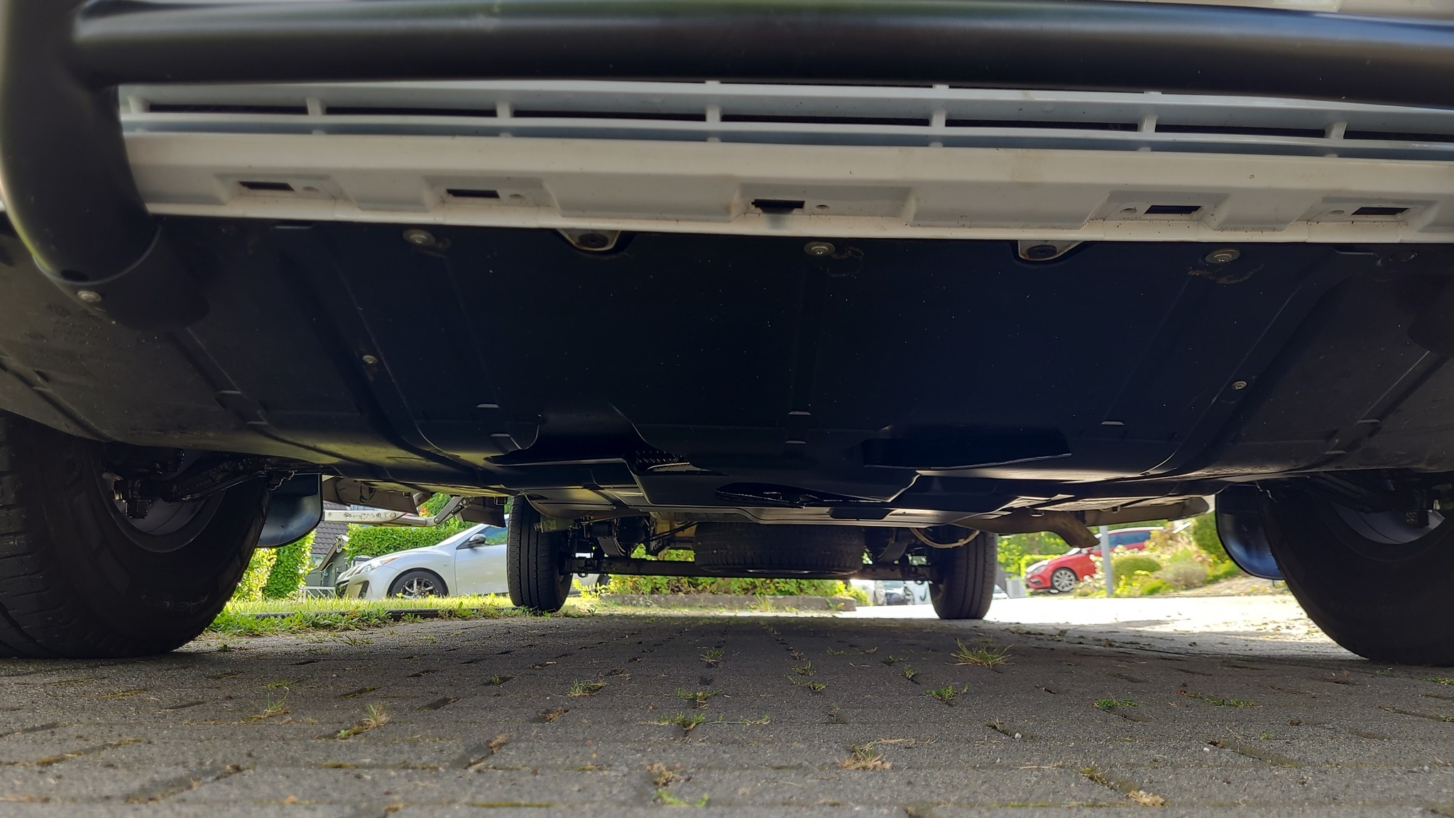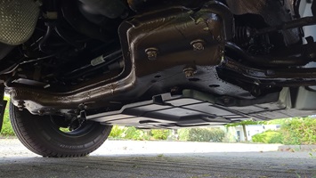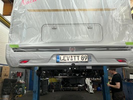 - Ein weiteres Extra ist der Anbau des ebenfalls von Fiat eingesparten Mittelteils des Unterfahrschutzes unter dem Motor. Ausgeliefert werden die Ducatos nur mit zwei kleinen seitlichen Unterfahrschutzen, die in der Mitte vor allem die Ölablassschraube frei lassen. Und die sitzt nun mal bekanntlich an unterster Position.