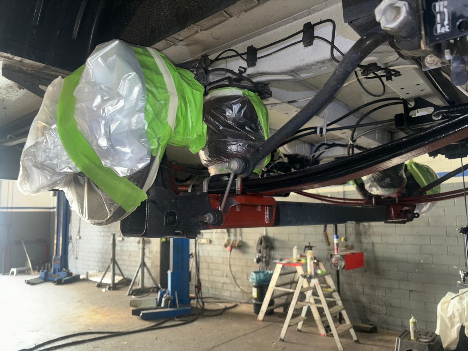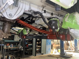 - Nolwenn muss auf eine Hebebühne, so dass die Arbeiten aufrecht stehend unter dem Fahrzeug vorgenommen werden können. Und nein, das ist keineswegs überall selbstverständlich!