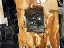 - Das Sprühen des Wachses darf nicht aus Sprühdosen erfolgen, sondern mit einem ordentlichen Kompressor aus einem Fass und mit entsprechend langen Sprühstangen. Nur so ist gewährleistet, dass zwischendurch der Sprühstrahl nicht abbricht, weil plötzlich die Dose leer ist. Die lange Sprühlanze kann immer komplett in einem Durchgang durch den gesamten Hohlraum geführt werden.