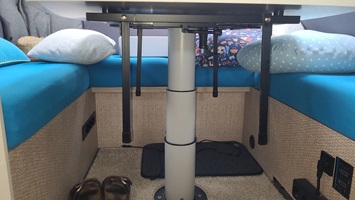 Dann haben wir einen Bericht auf YouTube gesehen, dass es auch Tische gibt, die sich zusätzlich auch noch in der Hochachse drehen, bzw. schwenken lassen. So etwas würde uns auch gefallen, weil es den Zugang zu den Sitzbänken nochmal deutlich erleichtern würde.